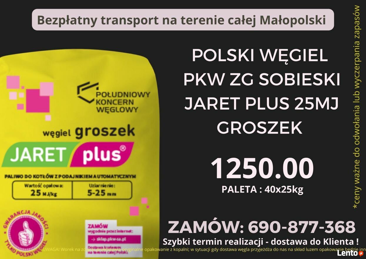 JARET PLUS 25 MJ-POLSKI WĘGIEL GROSZEK-DOSTAWA MAKÓW PODH